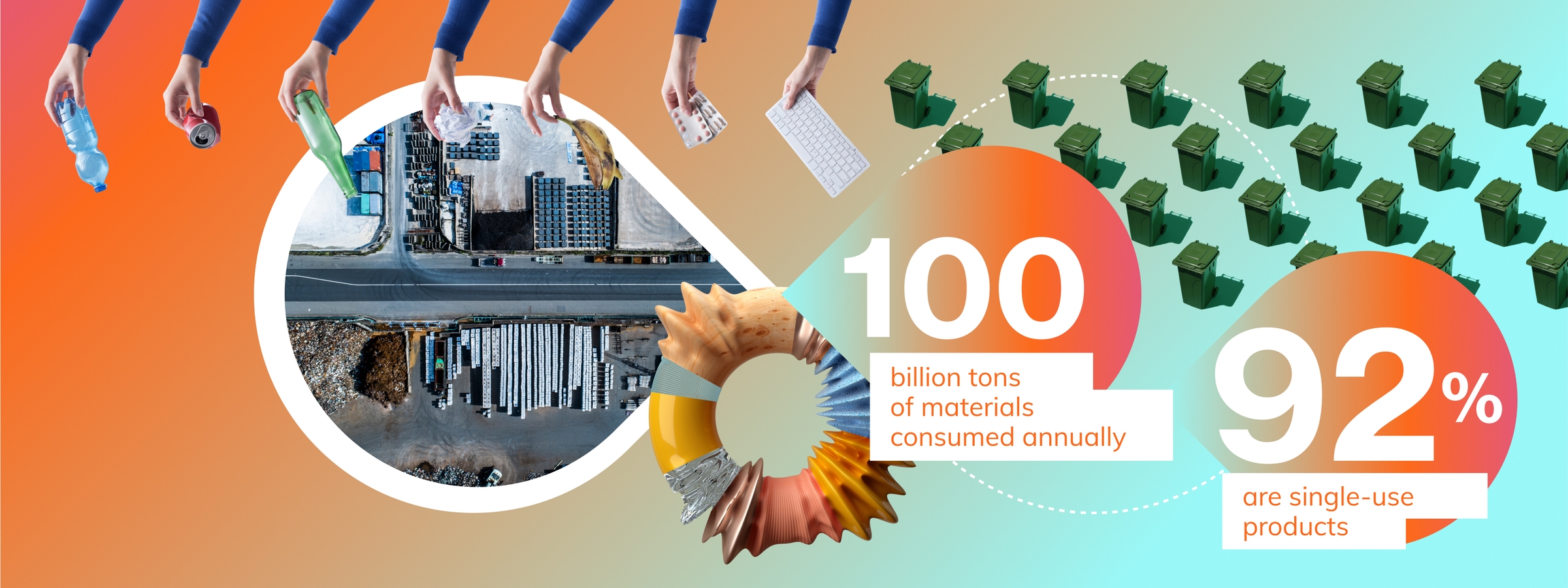 The world is looking at ways to decrease the 100 billion tons of materials that are consumed annually. Nearly 92% of these materials – such as metals, plastics, wood, concrete and chemicals – are for single-use products.