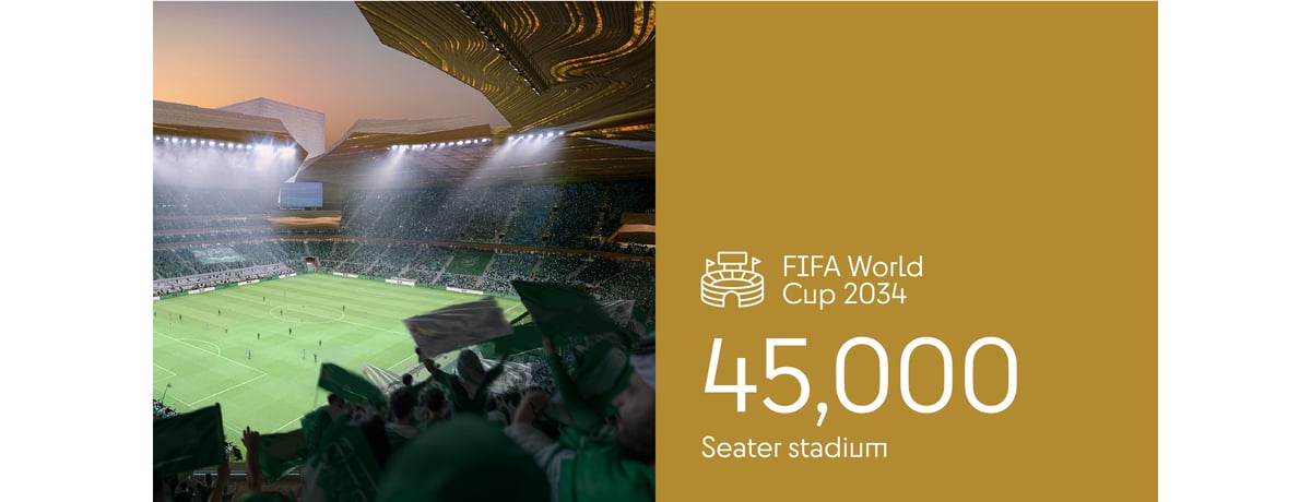This year, the company revealed designs for its stadium – a 45,000-seater space that is architecturally inspired by Saudi heritage and land. It will be ready in time to host the FIFA World Cup 2034, supporting Riyadh’s ambitions to become a global destination for sports and entertainment.
