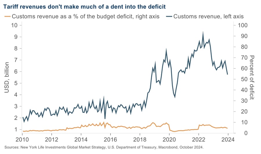 Long gone are the days of free trade. Both Trump and Biden oversaw a shift in U.S. trade policy away from the free trade and low government interference that marked the post-WWII period. Trump 2.0 is likely to ratchet up trade protections and has the latitude to do so even without Congressional approval. Whether it’s a negotiating tactic or a desired endgame, trade risk is moving higher.