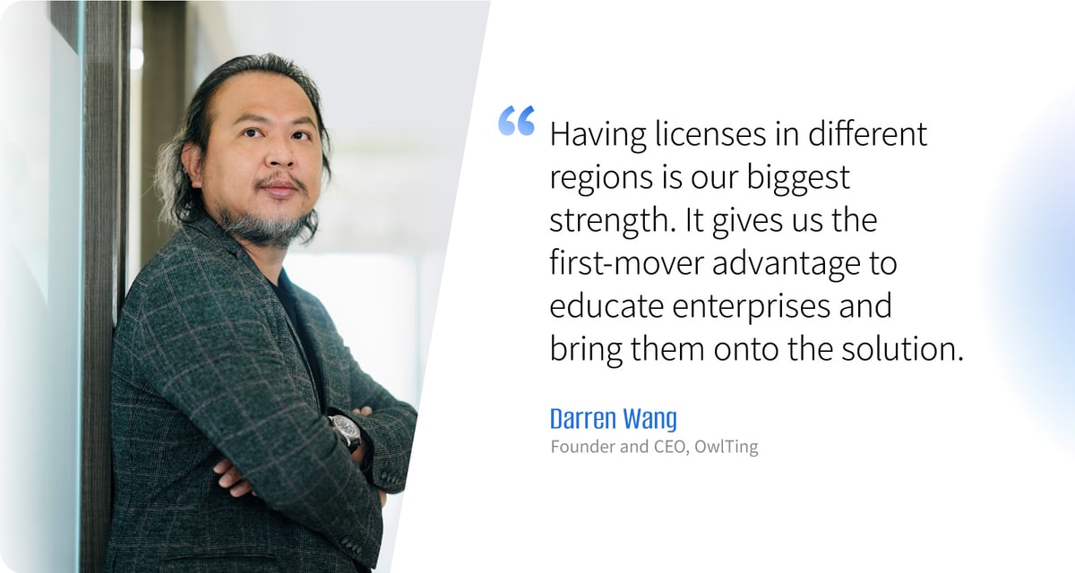 “Having licenses across different regions is our biggest strength,” Wang notes. “It gives us the first-mover advantage to educate enterprises and bring them onto the solution.”