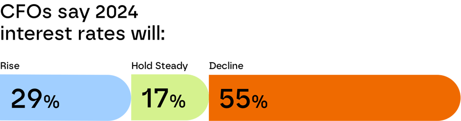 Almost a third of CFOs surveyed go a step further, predicting that interest rates will actually rise this year, despite a slowdown in inflation, weakness in the job market and a slide in homebuying in recent months.