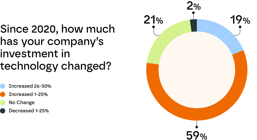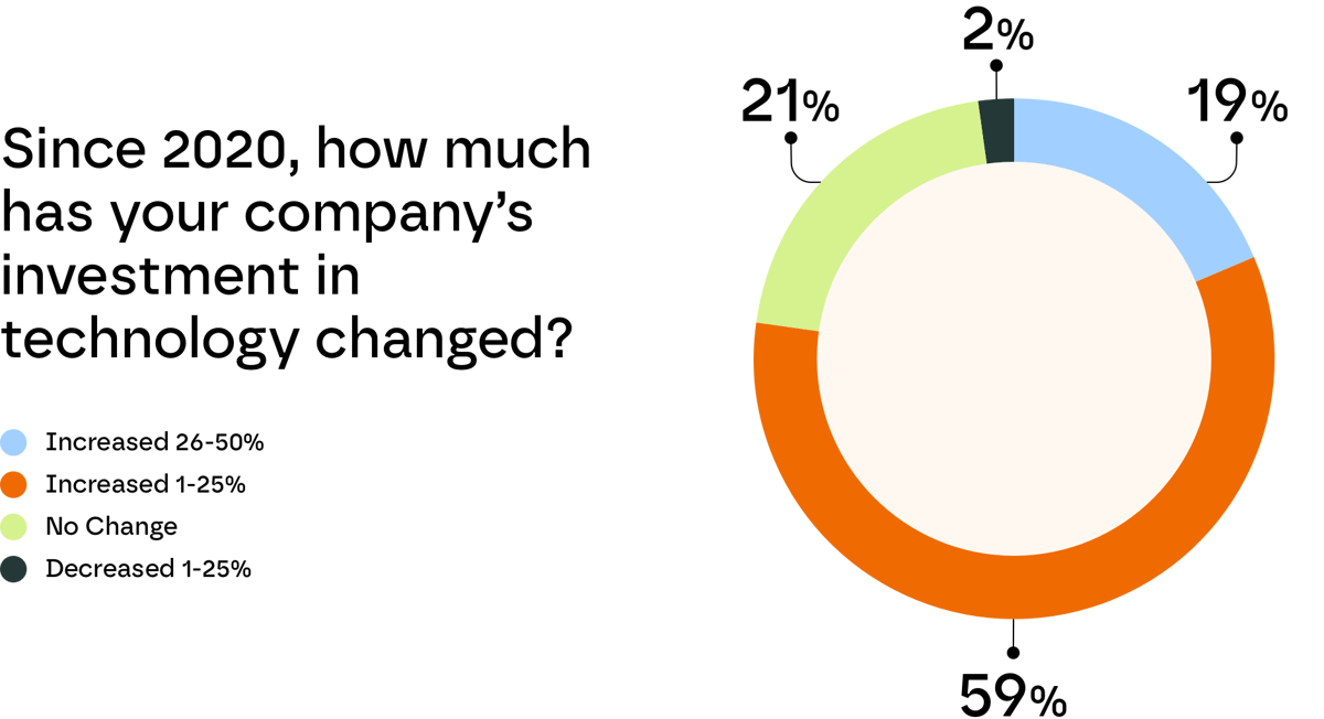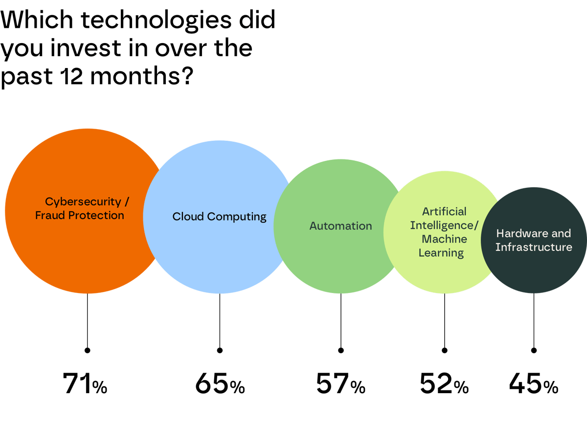 Cybersecurity and cloud computing have claimed the most tech dollars in the last year, while, surprisingly, only about half of companies have spent on AI projects.