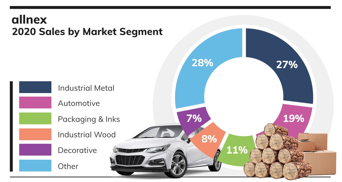 allnex is a major producer of key industrial coating segments, including industrial metal, automotive, and packaging.