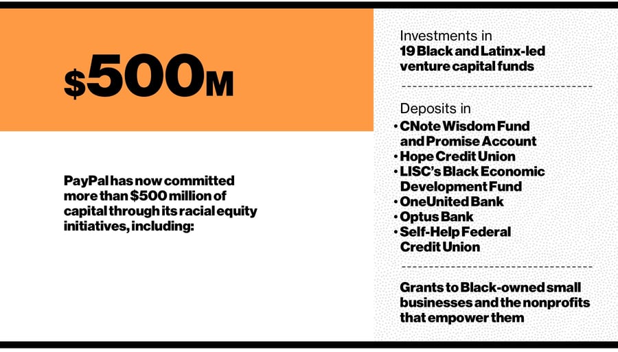 In June 2020, as the country grappled with the civil unrest that followed the death of George Floyd, Breonna Taylor and others, PayPal CEO Dan Schulman said that the company wouldn’t simply condemn racism, but would also take steps in the fight for racial equality, including a $535 million commitment to help Black- and minority-owned businesses and communities.