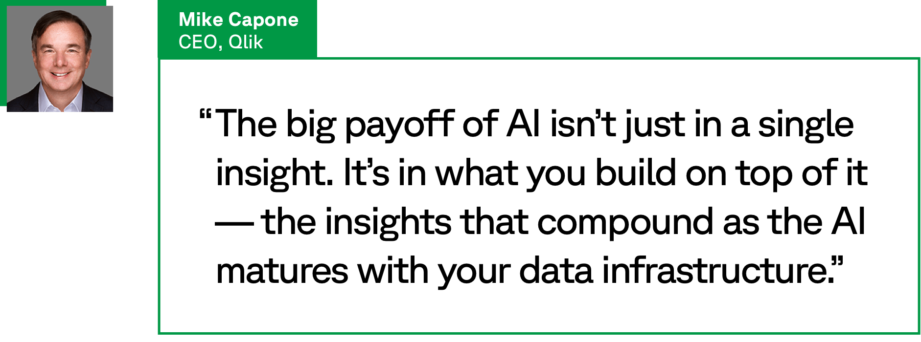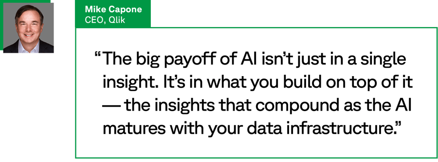 “Unstructured data is where a lot of intellectual property ends up, created by a full ecosystem that includes employees, customers, partners and suppliers,” says Mike Capone, CEO of Qlik, a data integration, analytics and AI platform. “The challenge in creating value from it is, it’s fragmented, it’s hard to get to and it’s in wildly different formats.”