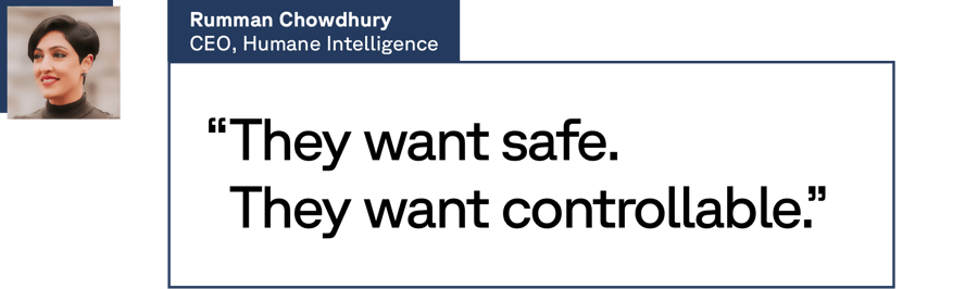 Currently CEO of Humane Intelligence, a nonprofit focused on improving AI models, Chowdhury believes many companies are too cautious with AI, using LLMs only as search tools for closed document sets.