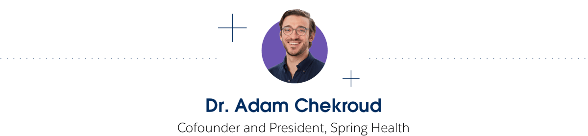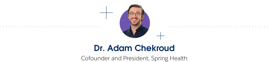 Dr. Adam Chekroud, Spring Health’s cofounder and President, is focused on meaningfully delivering mental-health therapies through a computer, tablet or smartphone screen.
