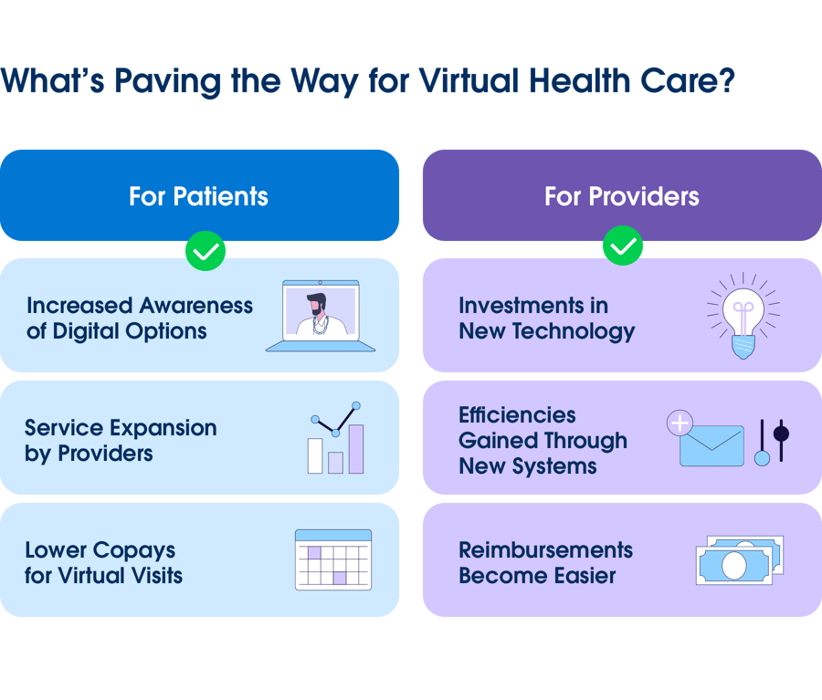 Bova cites the rise of telemedicine and self-service appointment-scheduling apps as examples of consumer technology devices becoming portals for frictionless access to providers. Similarly, where health care intersects with retail, as when filling doctor prescriptions for medicines and medical devices, the buying experience increasingly replicates the ease of online shopping.