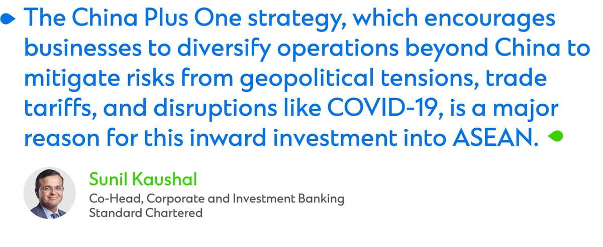 Innovation and collaboration are at the heart of ASEAN’s trade boom. Standard Chartered is playing a critical role in this expansion by leveraging cutting-edge digital platforms to help its clients operate more efficiently across borders. For example, Partior uses blockchain technology to facilitate real-time, multicurrency payments, while Straight2Bank Autoquote, simplifies cross-border transactions for businesses by enabling them to digitally request and accept pricing quotations for letters of credit on demand, at any time.[10]