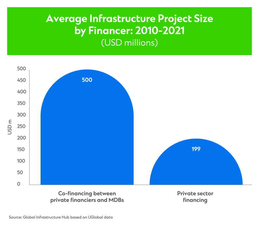 In this way, MDBs can play a bigger role in developing Asia, which needs to invest $1.7 trillion per year in infrastructure until 2030 to maintain its growth momentum, tackle poverty, and respond to climate change.[5] In fact, MDBs financed 5% of the total value of private capital investment in infrastructure in 2021, up from less than 0.5% in 2010.[6] Yet, the region only accounts for around only 13% of total private capital for infrastructure.[7]