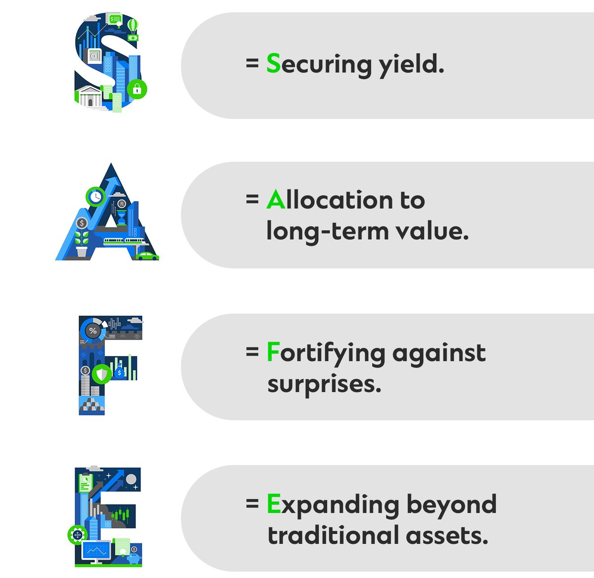 Applying structure is the most dependable way to make sense of uncertainty. All of the Signature CIO funds follow the same SAFE strategy developed by Standard Chartered to help clients navigate their portfolios in the still uncertain markets in 2023.