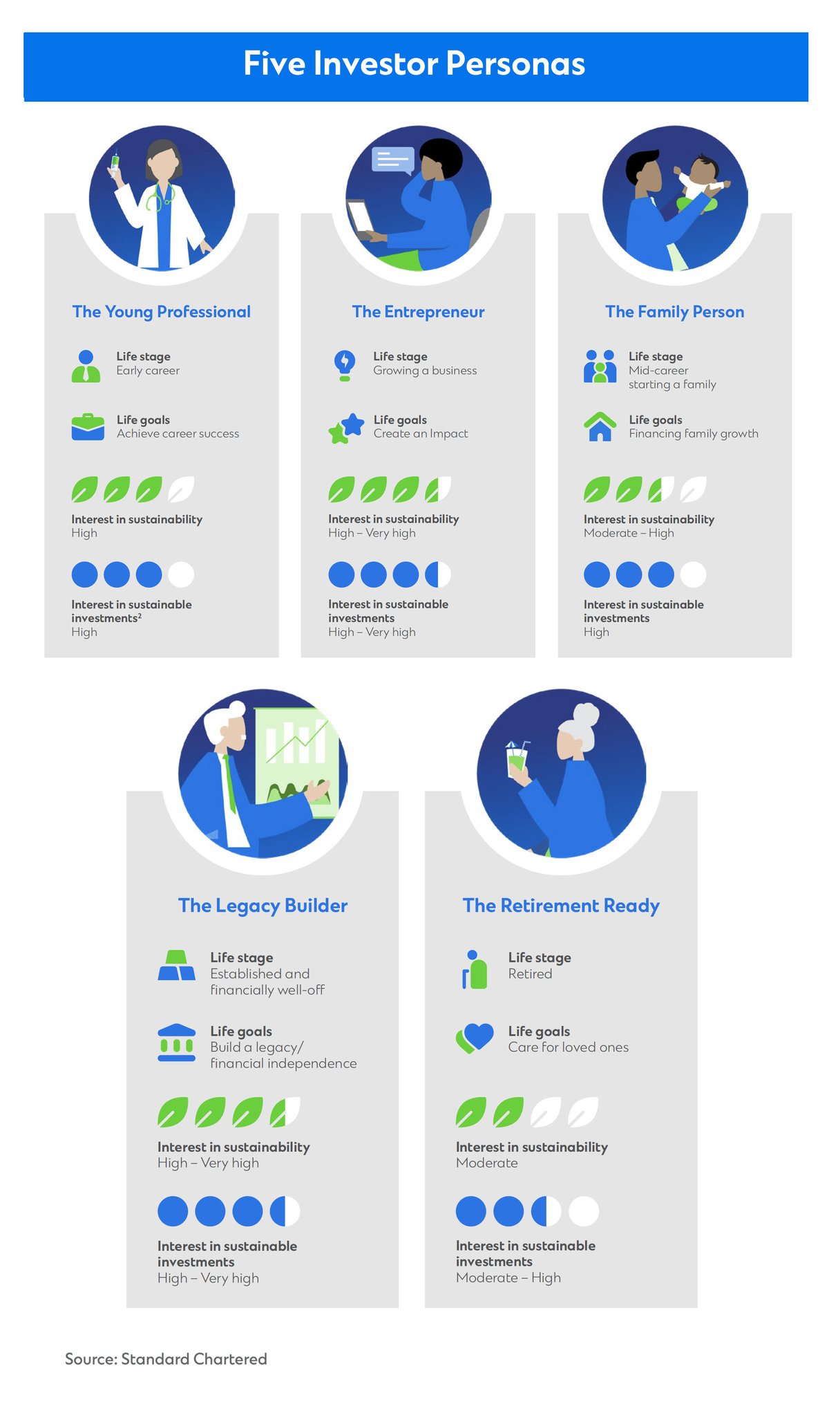 While investors’ intentions bode well for the global push toward a greener, more equitable future, a raft of barriers including a lack of global standards, data inconsistency and conflicting ratings systems block the way. Standard Chartered’s Sustainable Banking Report 2022 identifies five retail investor personas and the ESG barriers they face.