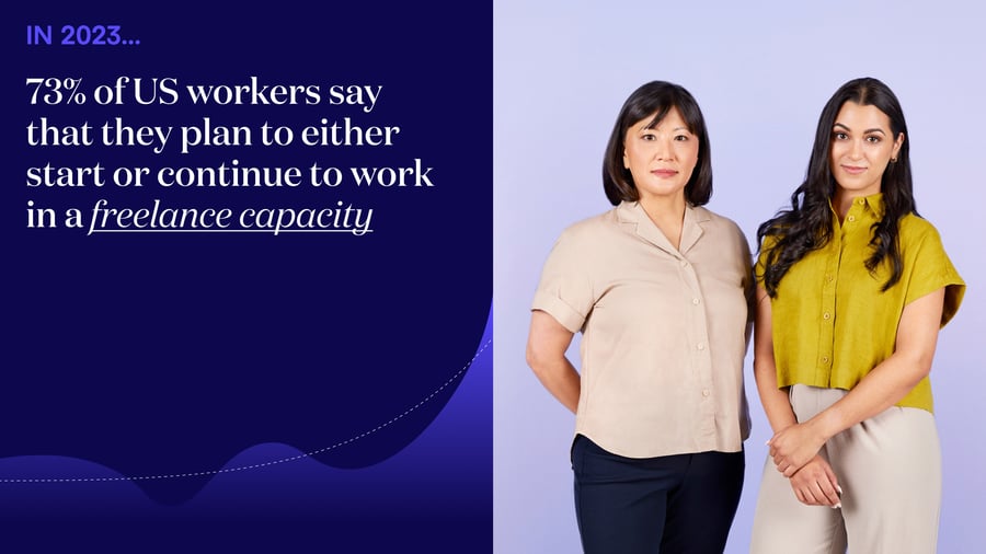 Ever more workers are choosing fractional or freelance roles. In 2023, 73% of US workers say that they plan to either start or continue to work in a freelance capacity. As we have observed in the ever-evolving Fiverr communities, they work on a contractual basis, with multiple part-time clients simultaneously, preferring to tackle advanced initiatives and then move on, rather than being tied to a single employer.