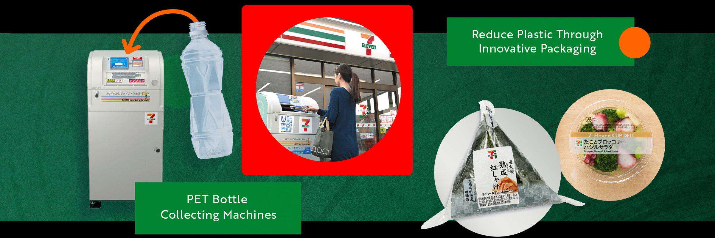 To reduce food loss, the company has, for example, developed rice strains that remain tasty even when refrigerated, more kinds of frozen foods, and improved the airtightness of packaging. To reduce plastics, thinner and alternate packaging as well as storefront reverse vending machines for collecting PET bottles have been introduced, among other initiatives.