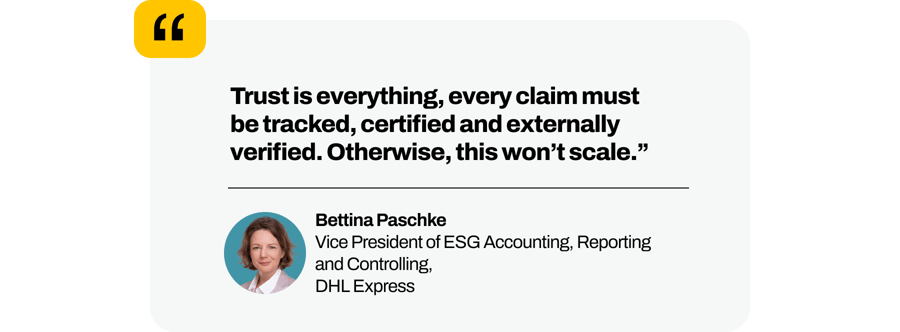 “Book and claim is an important mechanism to reduce emissions across the supply chain,” says Bettina Paschke, Vice President of ESG Accounting, Reporting and Controlling at DHL Express. “It’s a mechanism that allows companies to access the emission-reduction benefits of lower-carbon fuels, even if they don’t have a direct physical connection to where that fuel is used.”