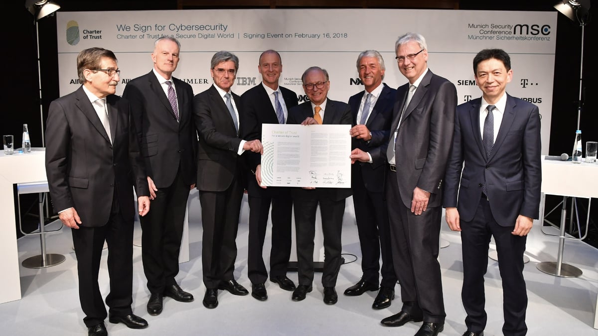 The Charter of Trust, established by Siemens, the Munich Security Conference and 14 other global industry players, has 10 core principles designed to combat cyber risks to business. Launched at the Munich Security Conference in February 2018, a chief aim of the Charter is to develop and implement rules to ensure cybersecurity throughout the networked environment.