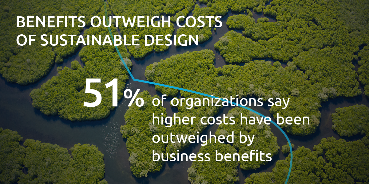 Several factors can discourage organizations from pursuing sustainable design, and cost is a major concern. But while some companies have experienced increased product costs, 60% report no change or a cost decrease since adopting sustainable product design principles. For example, 35% of apparel, footwear and accessories companies have seen a reduction in expenses thanks to sustainable product design.