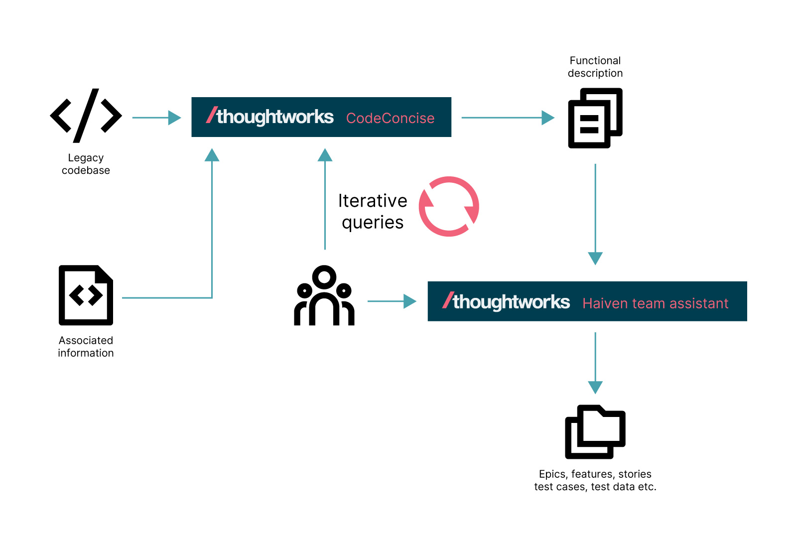 Thoughtworks complements CodeConcise with Haiven, a GenAI-based team assistant which helps automate a significant portion of the modernization value stream, with strategy formulation, requirements elicitation, test generation, architecture synthesis and threat modeling as some of its core capabilities.