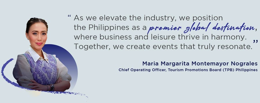 “Our skilled workforce embodies Filipino hospitality, ensuring world-class service tailored to every client’s needs,” says Maria Margarita Montemayor Nograles, Chief Operating Officer at Tourism Promotions Board (TPB) Philippines. “Complementing this is our country’s unparalleled beauty, offering unique and inspiring settings for events. These elements in particular inspired MICE Philippines: We Take Your Business to Heart, which reflects our commitment to delivering heartfelt, seamless, and memorable MICE experiences.”