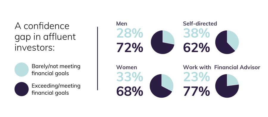 The pandemic has affected people very differently. A recent Bloomberg Wealth Study of affluent investors ages 25–54 found that most say they are meeting financial wealth goals and intend to splurge on luxury items in 2021. But not everyone feels so confident: About a third of affluent women and beginning or self-directed investors said they are barely meeting or struggling to meet their financial goals.