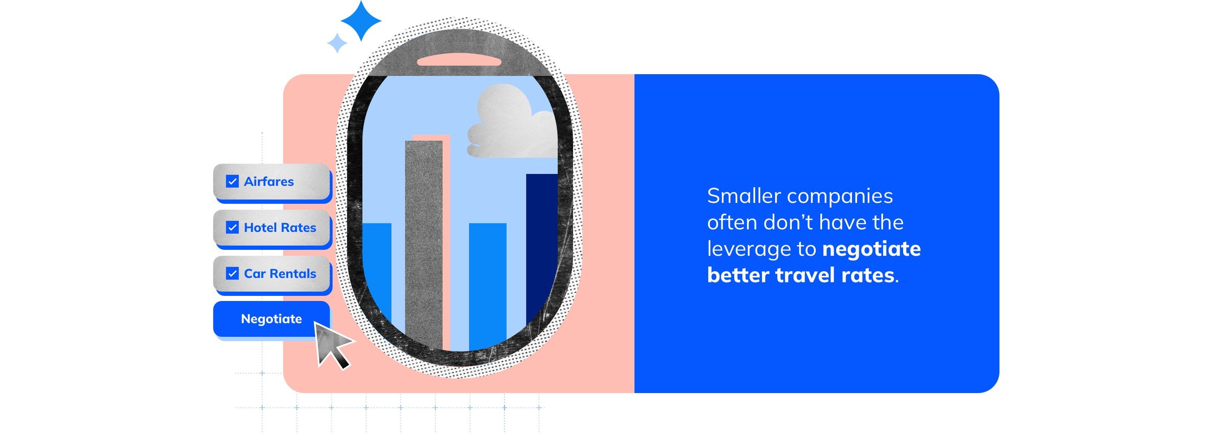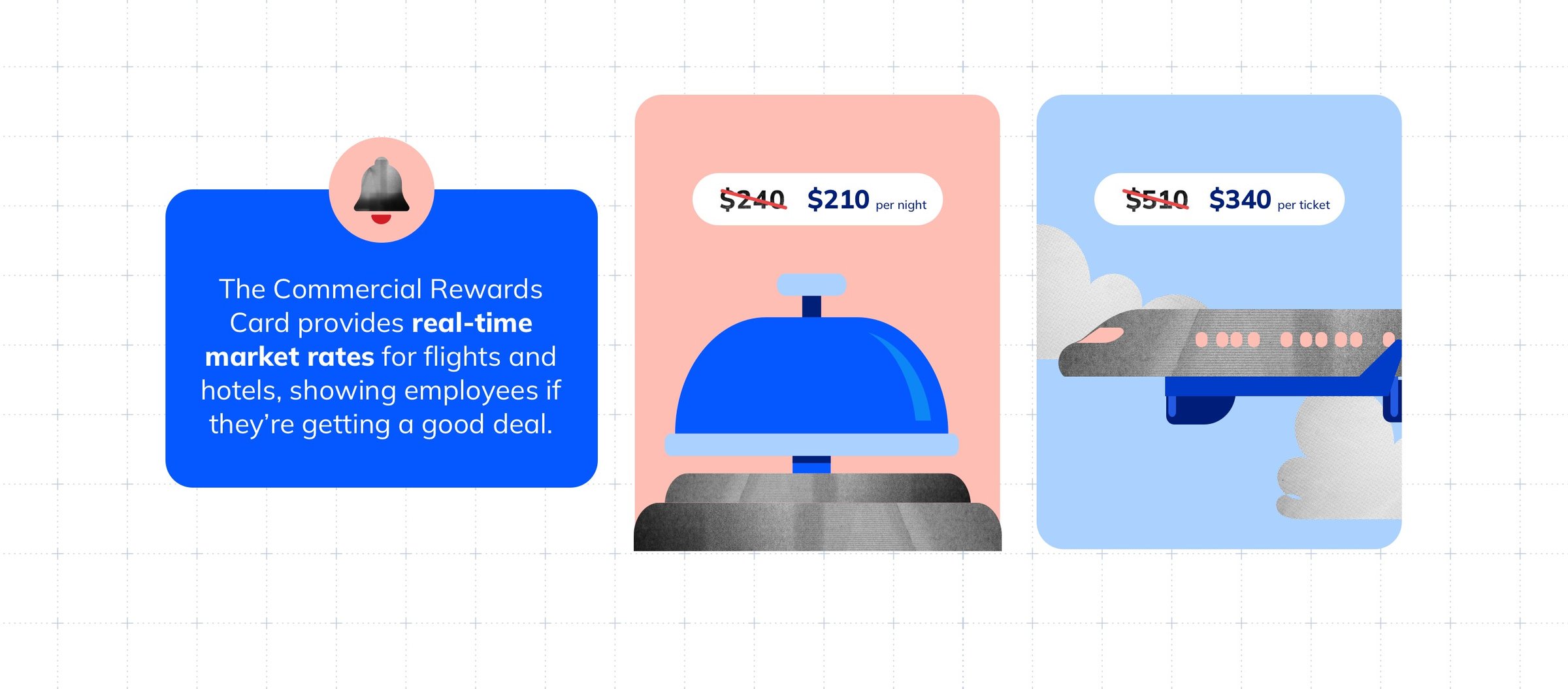 The Commercial Rewards Card also incentivizes smarter spending through employee rewards and helps employees make more cost-effective travel bookings. With real-time market rates for flights and hotels, employees booking a trip know instantly if they’re getting a good deal.
