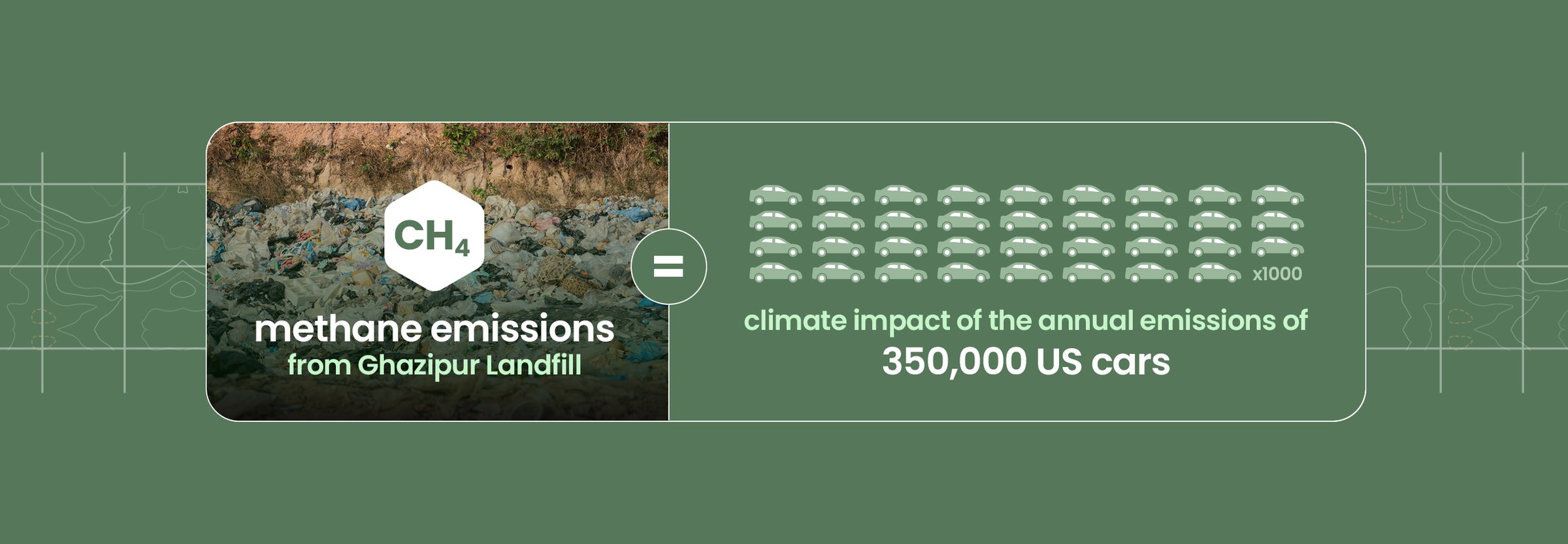 Last year, satellite data revealed methane emissions from landfills to be much larger than thought. Many of these sites are causing “super-emitter events.” For example, a satellite flying over the Ghazipur site in March of 2024, prior to the fire, recorded methane emissions from the open landfill equivalent to the climate impact of the annual emissions of 350,000 US cars.[8]