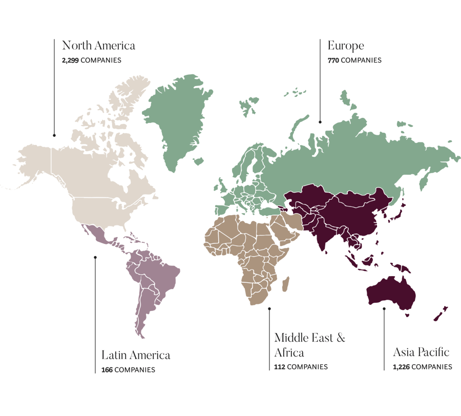To assess CEO agendas globally, we examined the Q2 2025 earnings calls of the 10,182 companies in the Bloomberg World Large, Mid & Small Cap Total Return Index (WLST). The index covers 99% of the market cap of the measured market.