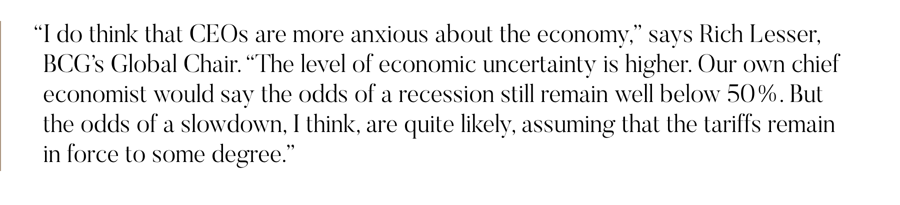 That’s the key finding of the third edition of the CEO Radar, an AI-powered analysis from BCG and Bloomberg Media Studios of more than 4,500 quarterly earnings calls worldwide. The study also found: