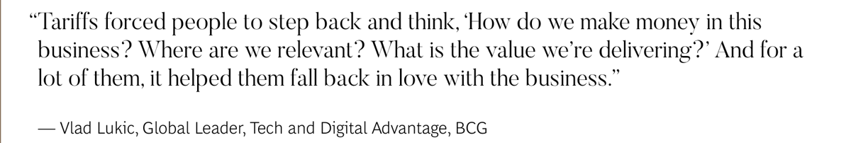 A picture of transition emerges: Companies are managing long-term tariff-induced volatility by refocusing on competitiveness and growth.