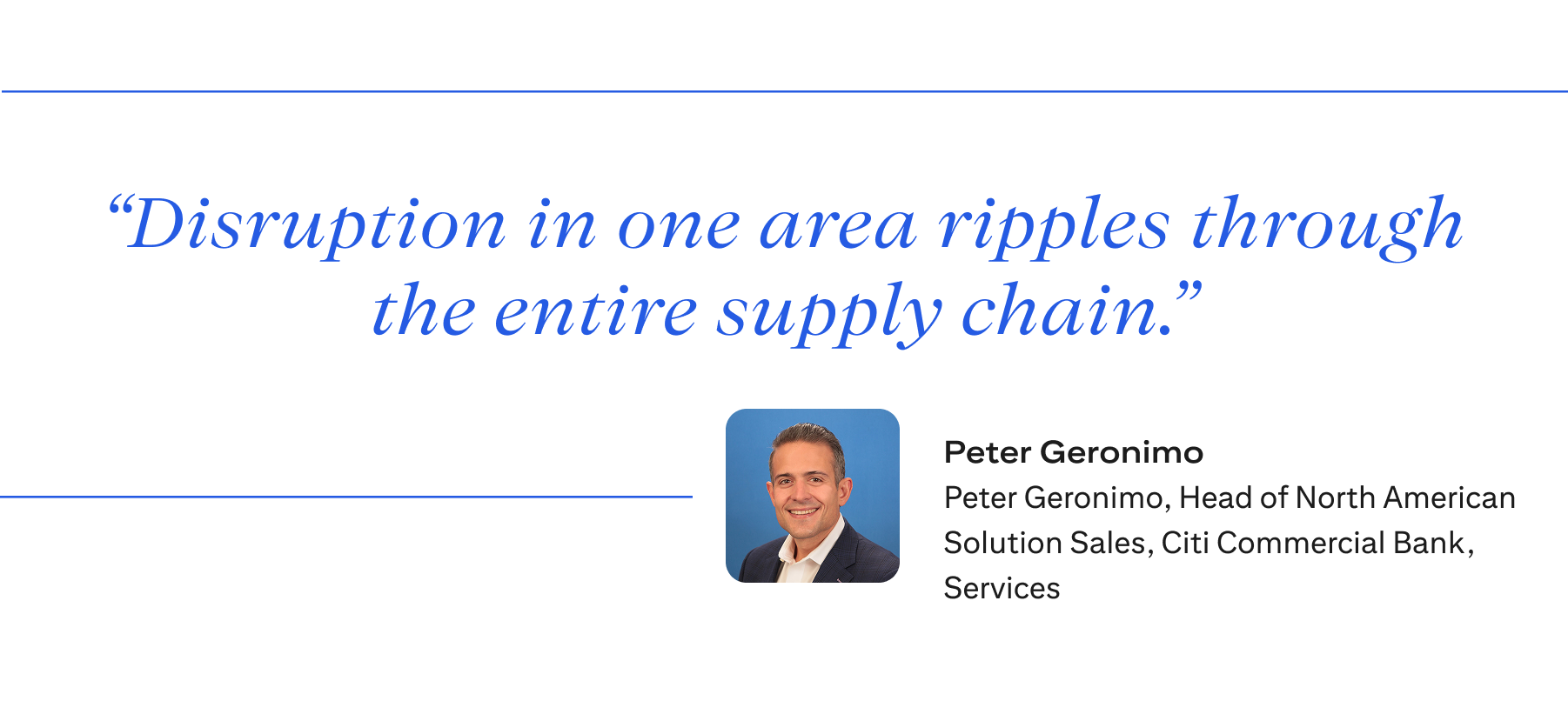 Mid-sized industrial companies don’t have to sacrifice scale as they seek supply chain resilience and transformation through technology. The automotive and arms categories are standout category examples of Industrials’ exposure to quickly shifting terrain, per Citi’s Global Industry Insights Report. These shifts—ranging from supplier volatility to AI innovation that could yield new applications seemingly overnight—can mean quickly onboarding new partners and providers.
