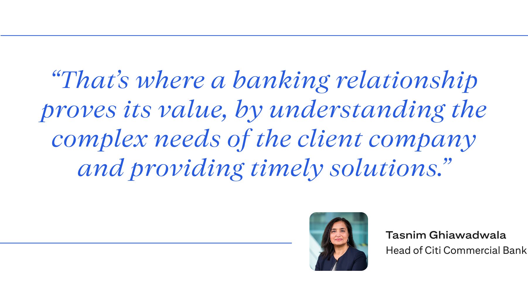 Whether the challenges are policy-driven or perennial, meeting them as a mid-sized company trying to scale requires a strategic approach to working capital. And business leaders also need a clear-eyed view of their own financial complexities, according to Tasnim Ghiawadwala, Head of Citi Commercial Bank.